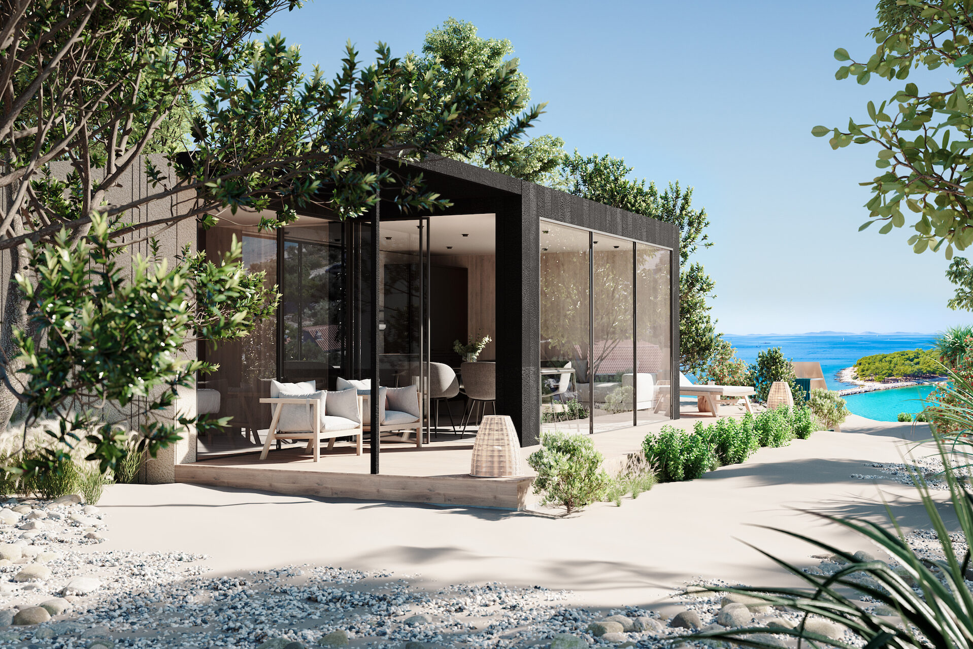 playful mix of soothing colors that reflect the laid-back beach lifestyle. Luxury by design, natural materials, and spacious living spaces makes